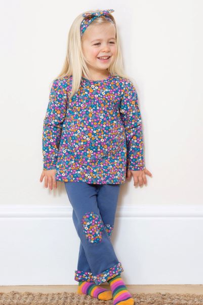 An Absolute Essential For Any Little One Who Loves To Be Comfy. With An Elasticated Waistband, These Navy Blue Joggers Combine Style And Practicality Perfectly. Starring Floral Turn-ups And Knee Patches For A Fun Look Whilst Protecting Your Little One's Knees From The Scrapes And Scuffs Of Adventuring. A Wonderful Style That Goes With So Many Tops, Especially The Matching Faraway Ditsy Tunic And Hairband.