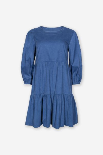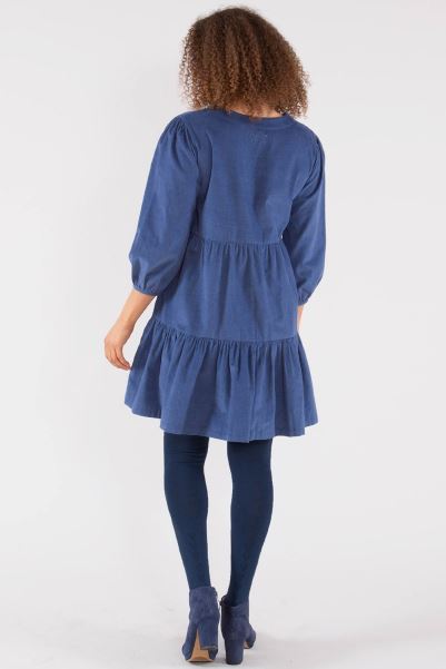 This Gorgeous Tiered Style Ticks All The Boxes For Autumnal Fashion And Comfort. With Soft Gathers At The Shoulders And Cuffs, Along With 3/4 Length Sleeves, This Navy Blue Bourton Dress Is Sure To Become A Favourite Throughout The Season. Made In Soft Organic Needle Cord Fabric, This Style Can Be Dressed Up With Heels Or Worn With Trainers For Everyday Outings. If You Are Between Sizes We Recommend Sizing Down.