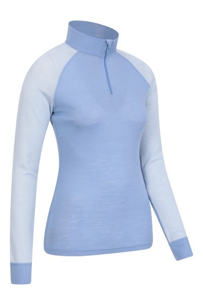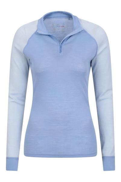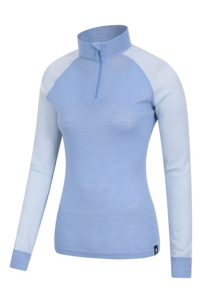 Merino Womens Zip-Neck Thermal Top Ii Mountain Warehouse Fashion Pale-Blue