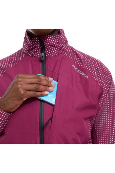 The Altura Nightvision Storm Women's Waterproof Cycling Jacket Has An Injection Of Our Unique Reflective Print Design That Has Been Used Successfully In Our Nightvision Commuter Range. The "Silver Reflective" Print Will Illuminate Key Areas Of The Body To Increase Visibility To Others In Low Light Conditions Whilst Maintaining Breathability And Comfort. The 10k / 10k Waterproof And Breathable Fabric, Taped Seams And Fleece Lined Collar Will Keep You Dry And Snug Whilst A Variety Of Storage Pockets Let You Keep Essentials Close To Hand On And Off The Bike.