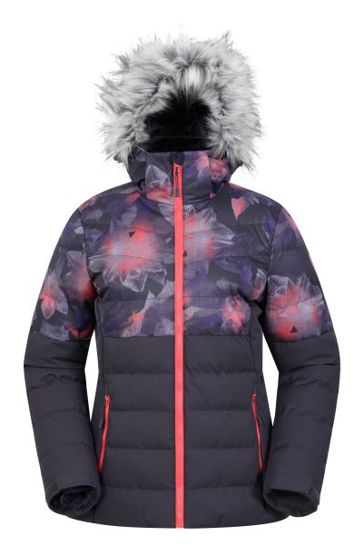 Our Avalanche Printed Womens Padded Ski Jacket Has A Breathable Outer With DWR Coating. It Is Water-resistant, Windproof And Has Been Tested Up To A Temperature Of -30°C (-22°F). It Features A Detachable Snow Skirt, A Detachable Fax Fur Hood Trim And Will Keep You Warm On The Slopes With Its Isotherm Fabric Technology.
