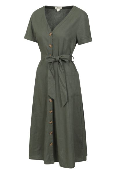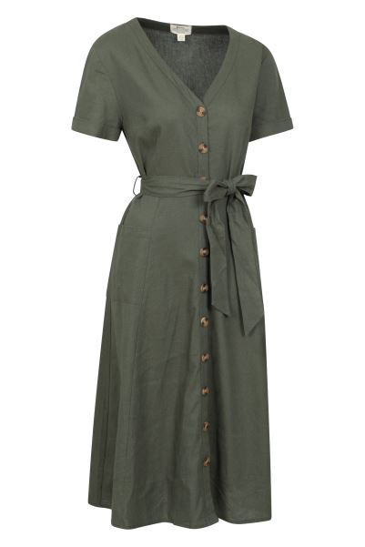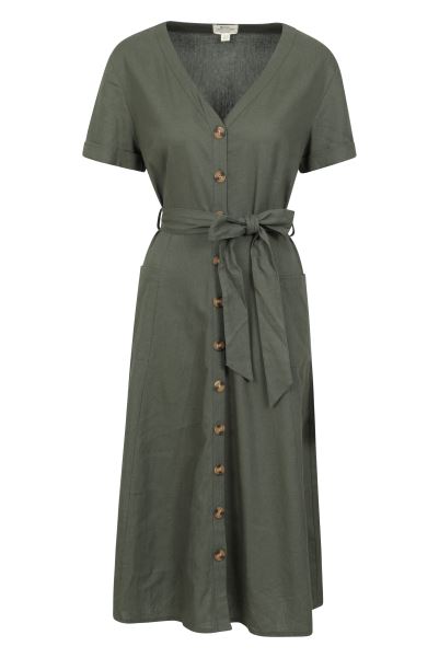 New Khaki Poppy Womens Linen Blend Shirtdress Mountain Warehouse