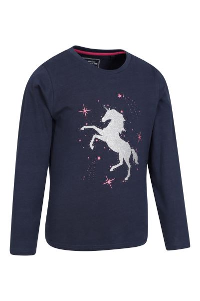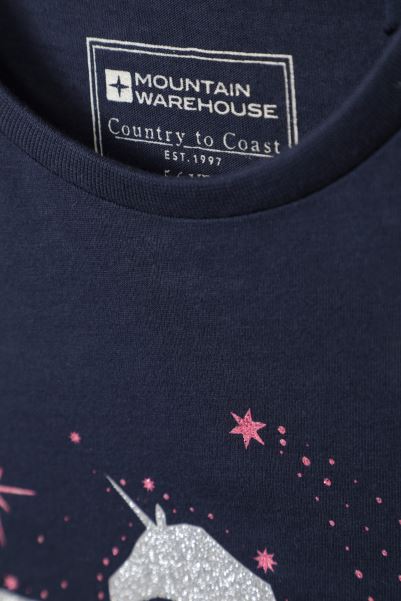 Home| Kids| Tops| Mountain Warehouse Glitter Unicorn Kids Organic Top Navy Collection