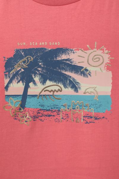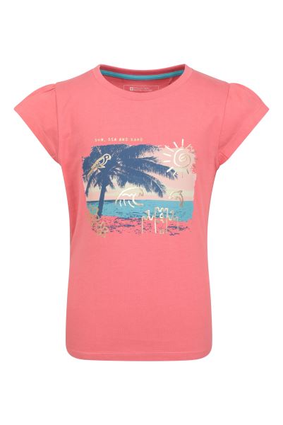 Our Beach Kids T-Shirt Is Made Of Organic Cotton Jersey. By Supporting Organic Cotton, You Are Helping To Keep Waterways And Soil Clear Of Harmful Chemicals And Supporting The Welfare Of The Workers. This Top Has A Quality Graphic Print With Gold Coloured Foil Detailing, Making It Great For Any Occasion.